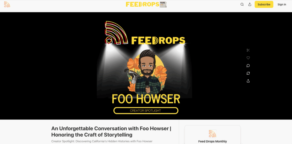 I had the chance to chat with Brian Colburn from FeedDrops about the work that I do as Foo Howser. It was a great interview that dove into my journey into making history content; Brian had a lot of really insightful questions. Check it out here.